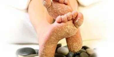 I scrub your feet with an exfoliating sugar scrub to get rid of dry skin, apply a hot towel to remove the sugar and dead skin, then I apply a butter cream to soften and smooth your feet.